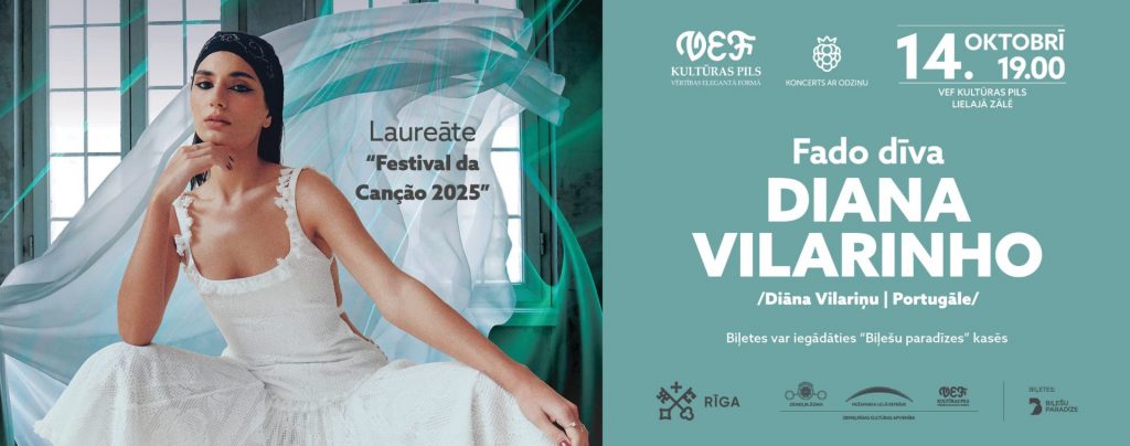 14. oktobrī plkst. 19.00 VEF Kultūras pilī klausītājus gaida īpašs muzikāls piedzīvojums – uz skatuves kāps viena no spilgtākajām mūsdienu Portugāles fado māksliniecēm Diāna Vilariņu (Diana Vilarinho). Ziemeļrīgas kultūras apvienība aicina doties jutekliskā ceļojumā uz Lisabonas sirdi, kurā mūzikā satiekas liktenis, ilgas un dvēseliska atklātība.