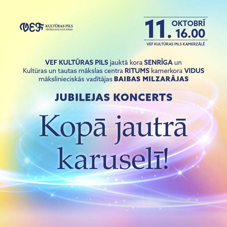 Ielūdzam uz diriģentes Baibas Milzarājas jubilejas koncertu “Kopā jautrā karuselī!” 11. oktobrī plkst. 16.00 VEF Kultūras pils Kamerzālē.